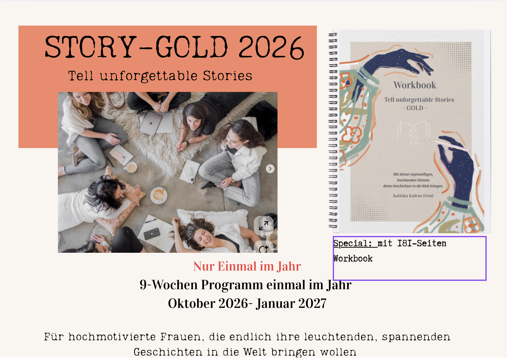 👩🏼💻️ 8 wöchentliche Story-Trainings mit Katinka (Jede Geschichte kommt dran).